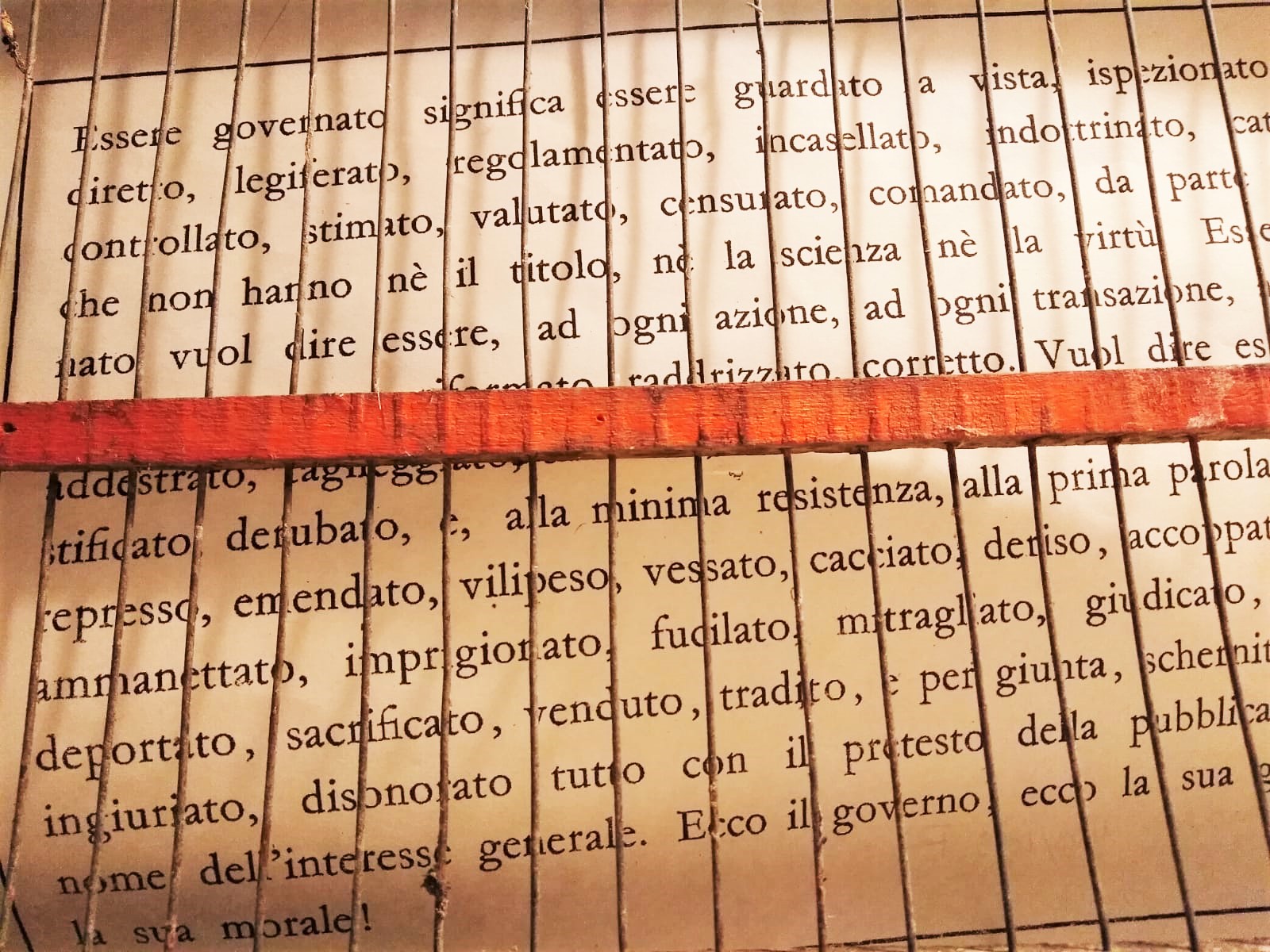 Essere governato significa essere guardato a vista, ispezionato, spiato, diretto, legiferato, regolamentato, incasellato, indottrinato, catechizzato, controllato, stimato, valutato, censurato, comandato, da parte di esseri che non hanno né il titolo, né la scienza, né la virtù. Essere governati vuol dire essere ad ogni azione, ad ogni transazione, a ogni movimento, quotato, riformato, raddrizzato, corretto. Vuol dire essere tassato, addestrato, taglieggiato, sfruttato, monopolizzato, concusso, spremuto, mistificato, derubato e, alla minima resistenza, alla prima parola di lamento, represso, emendato, vilipeso, vessato, cacciato, deriso, accoppato, disarmato, ammanettato, imprigionato, fucilato, mitragliato, giudicato, condannato, deportato, sacrificato, venduto, tradito, e per giunta, schernito, dileggiato, ingiuriato, disonorato, tutto con il pretesto della pubblica utilità e in nome dell’interesse generale.