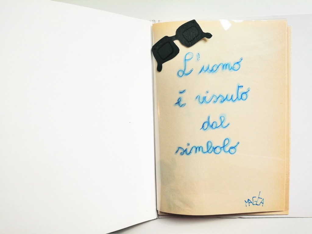 “…il pittogramma è sempre l’esplosione di due entità, ma in una condizione originaria, tale per cui ciascuna non è sufficientemente consolidata in sé stessa: è sempre in procinto di precipitare nell’altra e di confondersi con l’altra”.