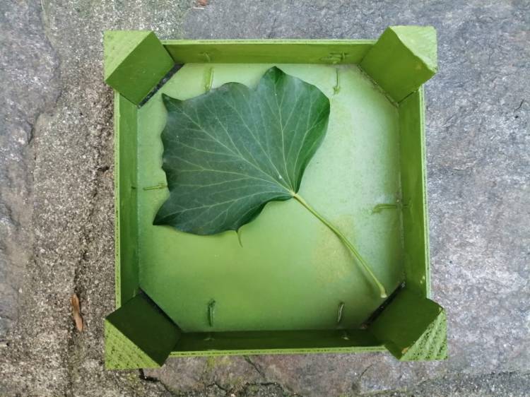 Cassetta legno 18x18cm / smalto opaco verde / fotografia di una foglia