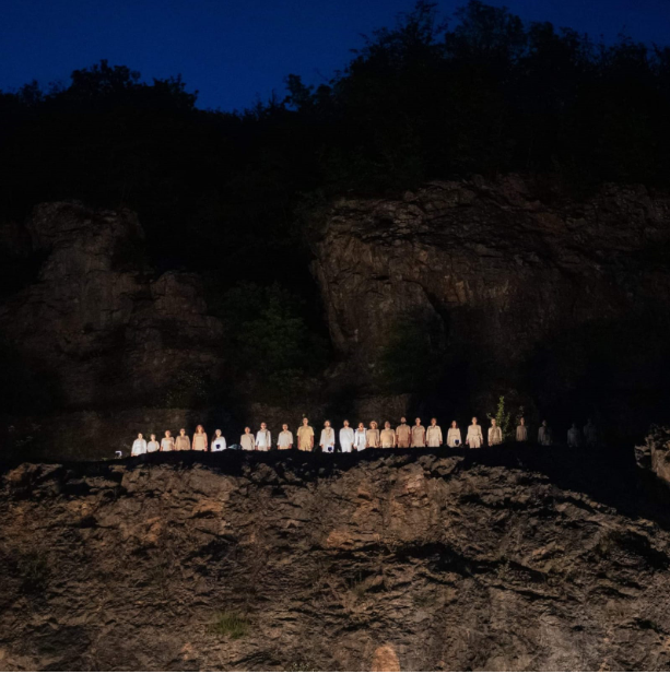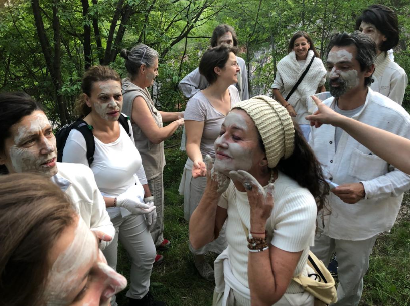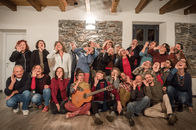 Così vado via via scoprendo la bodypercussion; l’improvvisazione vocale, le circlesongs. Un mondo per me nuovo e altamente suggestivo. Nel giugno 2019 partecipo con il coro Goccia di voci allo spettacolo “CAVA: le pietre raccontano il mare a chi le sa ascoltare” presso le Cave di Arzo, località nel Canton Ticino che ha legato il proprio nome proprio alle cave di marmo (ora in disuso), presenti nel suo territorio e oggi luogo e scenario ideali per suggestivi eventi. La regia fu di Juri Cainero con la compagnia Onyrikon, due bande musicali e la partecipazione straordinaria di Gardi Hutter, attrice teatrale, commediografa, clown con alle spalle più di 3800 rappresentazioni in 35 paesi e 5 continenti. Un’esperienza unica e indimenticabile.