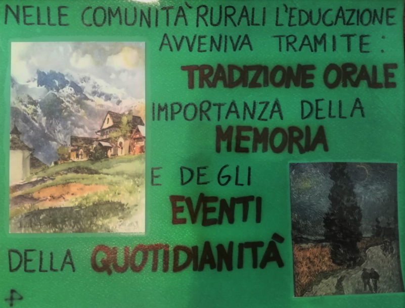 Con il progetto Madre Terra riporto all’interno dell’istituzione scolastica negli anni 2017/2018/2019 i contenuti e gli obiettivi culturali, educativi e didattici della tradizione orale, della cultura materiale, della consapevolezza delle proprie radici contadine. Questa volta la referente e coordinatrice interna alla scuola è Anna Mansi, architetto e insegnante di educazione artistica/tecnica alla scuola secondaria di I grado “Gisella Floreanini” di Domodossola, nonché grande amica e amante di quella Natura ritenuta “maestra suprema”; con Anna e Thomas Gorner, esperto in botanica, ho partecipato anche ad alcune uscite rocambolesche e “magiche” sul nostro variegato e stimolante territorio ossolano, facenti parte integrante del progetto.