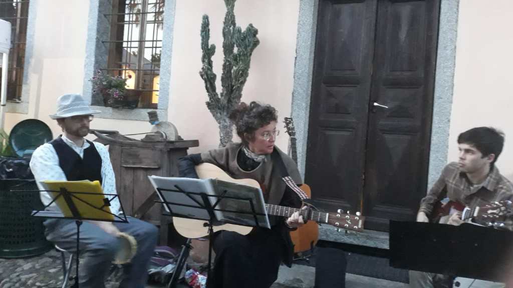 Dopo parecchi anni mi riavvicino al genere popolare grazie ad un gruppo locale verbanese “I Lavertis” il cui repertorio inerisce le musiche da ballo ma anche da ascolto, nate per intrattenere i convenuti. Grazie ad Alessandro Boneschi, Alberto Chiesa e Diego De Piccoli, scopro una musica volutamente ripetitiva che privilegia la melodia e il ritmo rispetto all’armonia e agli accordi e che ripropone brani popolari senza particolari arrangiamenti proprio per mantenerli il più possibile vicini agli originali. Quattro anni passati tra prove, esibizioni pubbliche legate al territorio e al ballo popolare di piazza, partecipazioni a rassegne (ad es: festa del rione Al Bass, di Fondotoce; Musica in Quota, alpe Veglia 2017). Con loro sono divenuta autrice delle parole di alcuni brani inediti, nati per essere eseguiti con i soli strumenti, in seguito liricizzati al fine di rendere i pezzi più concreti ed evocativi.